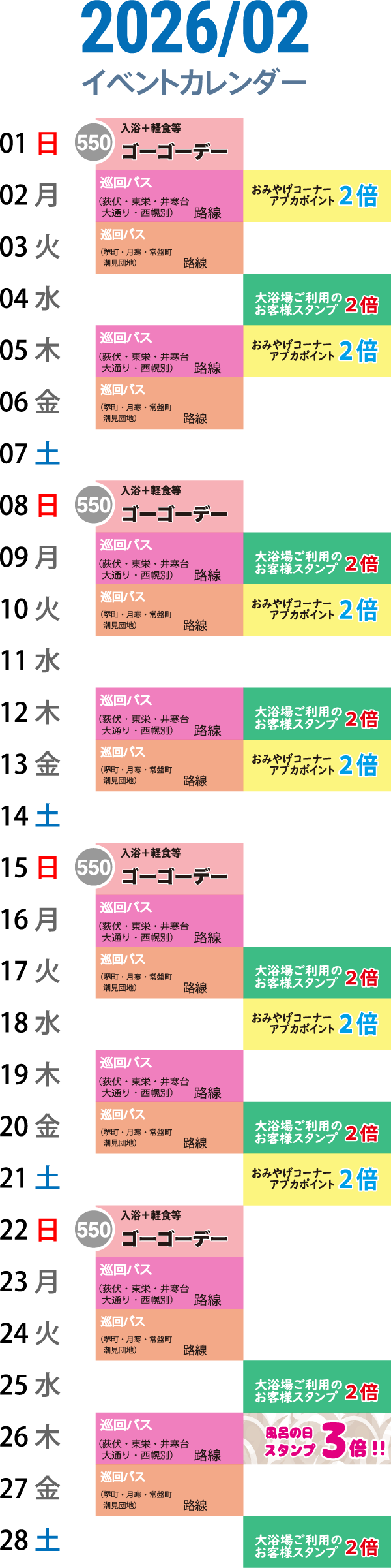 2月のイベントカレンダー — 先頭固定表示