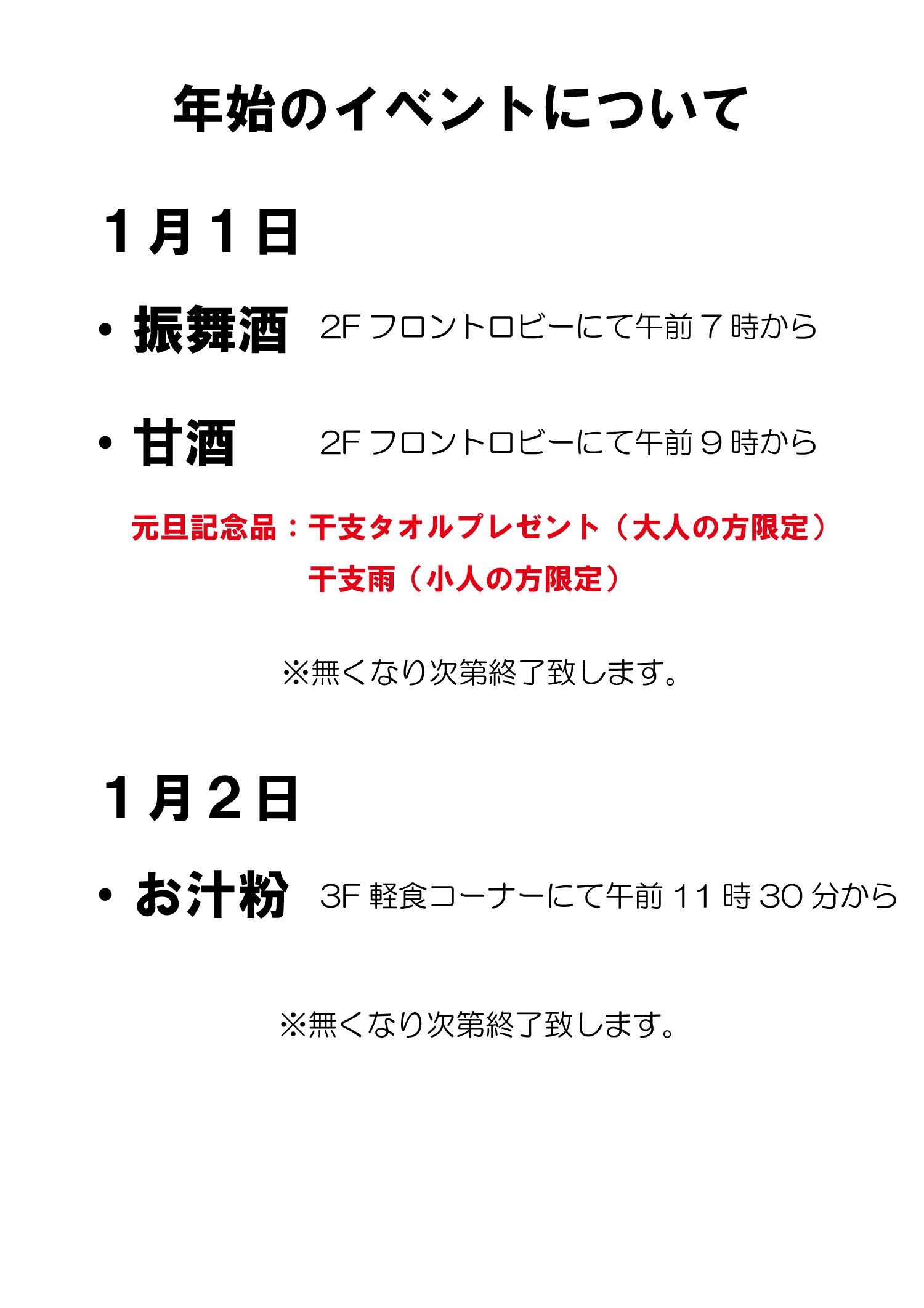 • 🐴午年特別企画 12月31日のご宿泊の方から順次プレゼント!『宿泊者限定!!』
